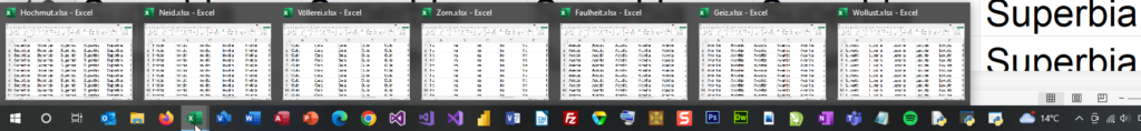 Auch nicht die Reihenfolge, wenn man auf das Excelsymbol in der Taskleiste klickt: