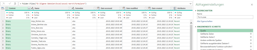 - Schritt: Leere Arbeitsmappe. Daten / Daten abrufen und transformieren / Daten abrufen / Aus Datei / Aus Ordner