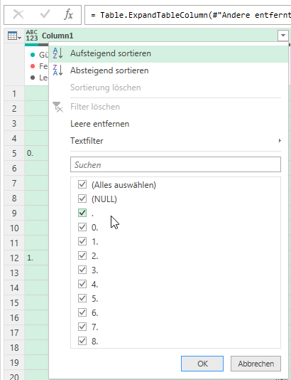 Ich stutze. Zurück zu PowerQuery. Vielleicht ist „irgend etwas“ in der ersten Spalte?!? Es sieht nicht so aus: