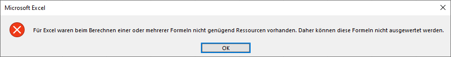 „Für Excel waren beim Berechnen einer oder mehrerer Formeln nicht genügend Ressourcen vorhanden. Daher können diese Formeln nicht ausgewertet werden.“