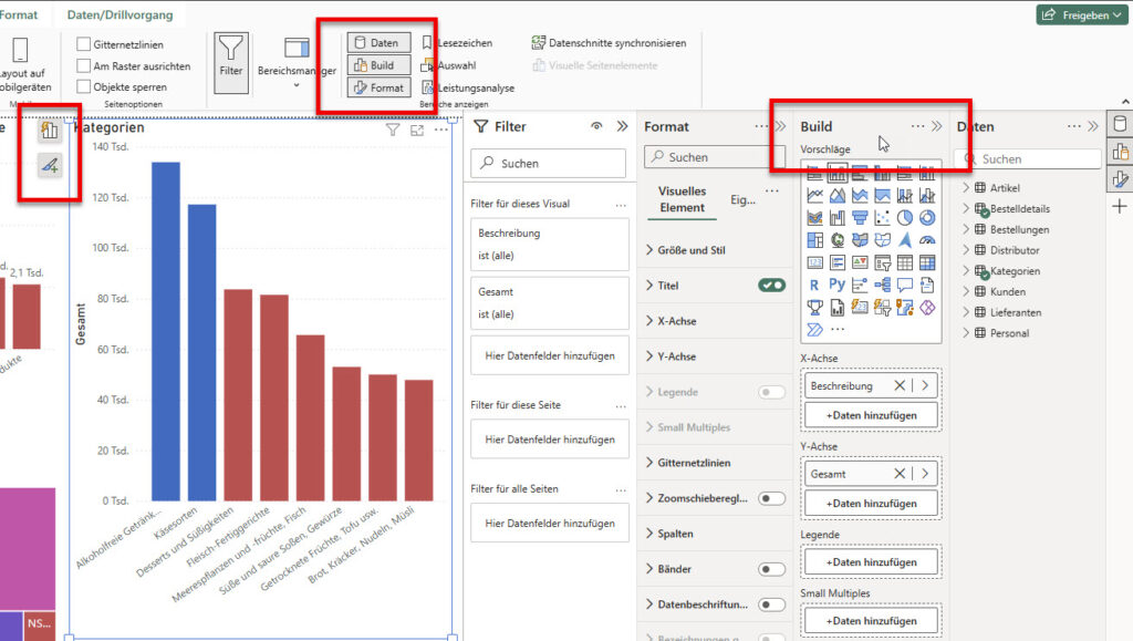 Irgendwie sieht sein PowerBI anders aus als meins, wundert sich ein Teilnehmer in der PowerBI-Schulung. Beispielsweise fehlt das Symbol zum Formatieren der Visuals. Auch sonst ist einiges anders platziert: