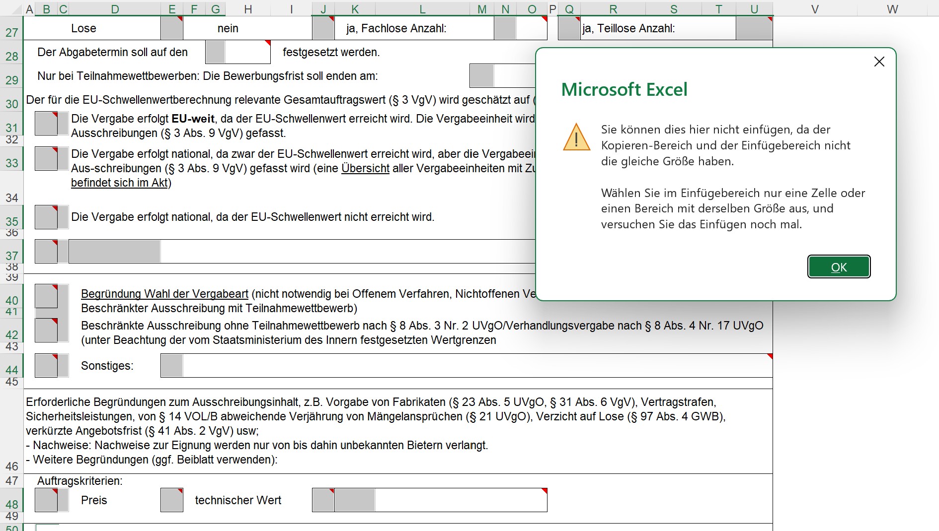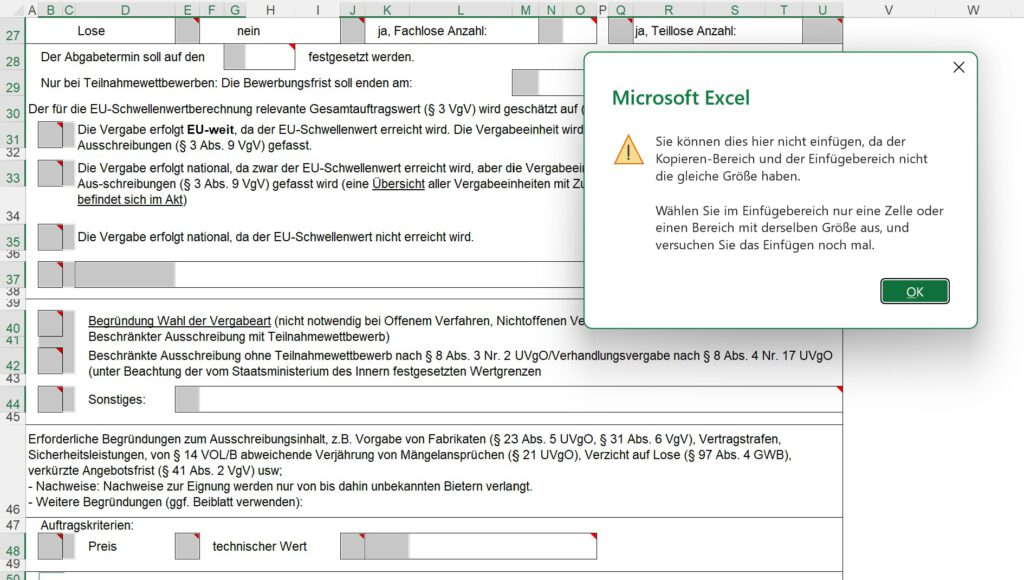 Allerdings: Da die Zellen zum Teil verbunden ist, kann man sie zwar auf diese Art markieren, jedoch nicht den Inhalt der Notizen einfügen.