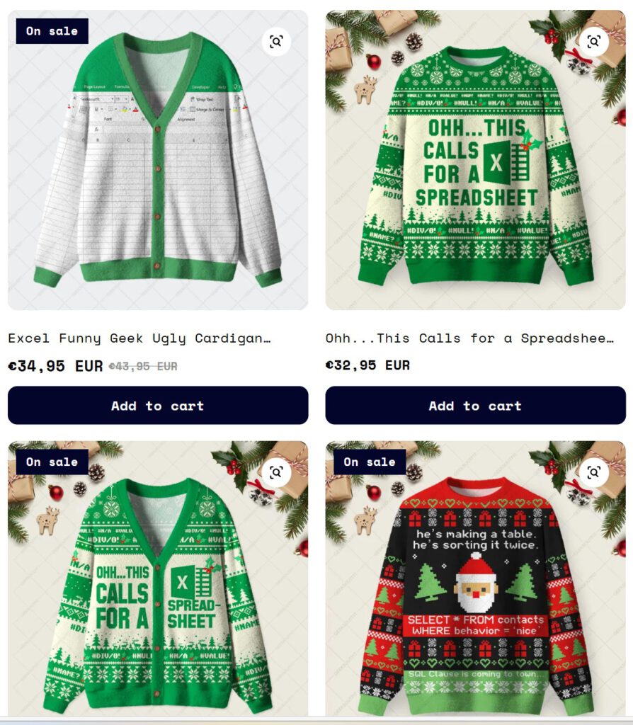 Briefe von Tintenfischen sind nur schwer zu lesen. Sie krakeln. 21. November 2025 Medardus Verwaltung von Excel Excelpullover? Brauchen wir so etwas? Wollen wir so etwas? Gefunden in den Tiefen des Internets. Kommentar hinterlassen