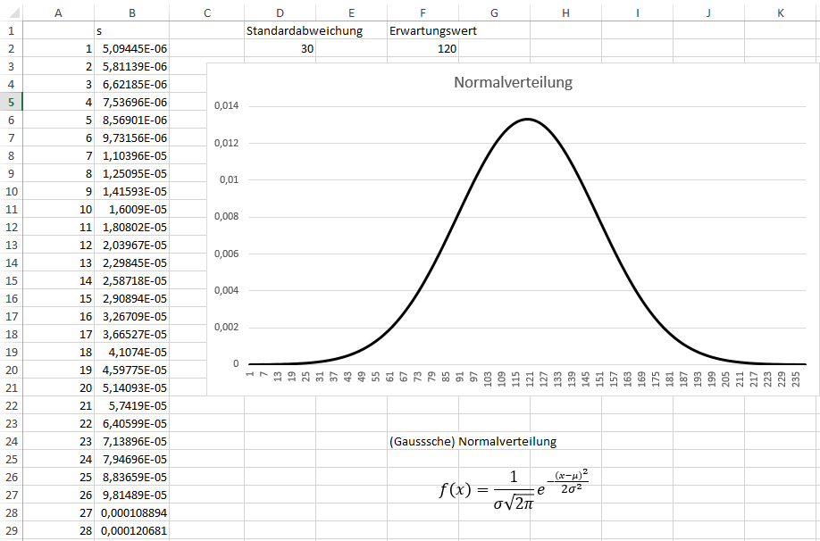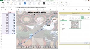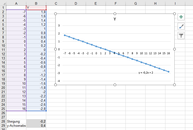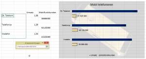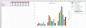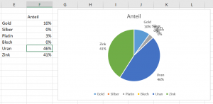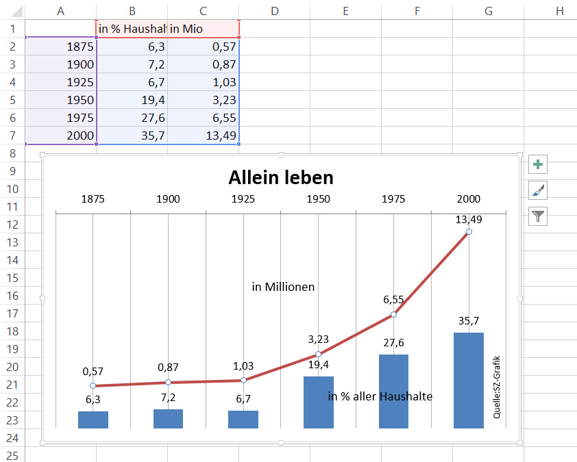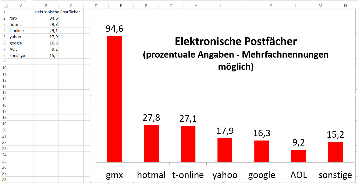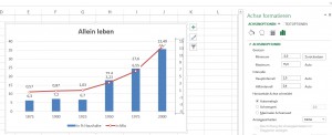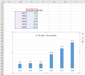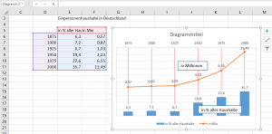 Klickt man auf OK, wurden Diagramm und Mini-Excel-Tabelle eingeblendet: