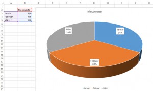 Nun – würde Excel die Prozentwerte im Diagramm als ganze Zahlen ohne Nachkommastellen korrekt anzeigen, dann wäre möglicherweise die Summe nicht gleich 100%. Ältere Excel-Versionen haben das so gemacht. Excel 2013 „rundet“ nun so, dass die Summe immer 100% ergibt, auch wenn daraus möglicherweise eine falsche Darstellung resultiert.