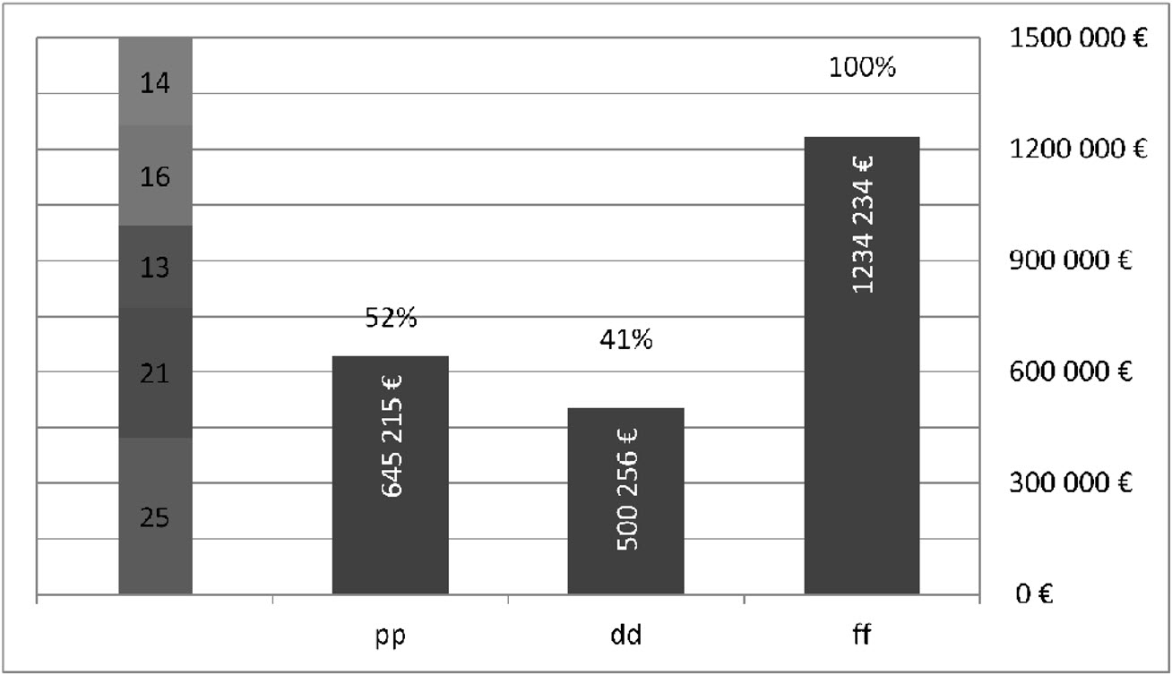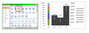 Gestern wollte Carmen wissen, wie man zwei Diagramme kombinieren kann. Sie möchte gerne zwei x zwei Säulen stapeln. Also beispielsweise männlich und weiblich; intern und extern.