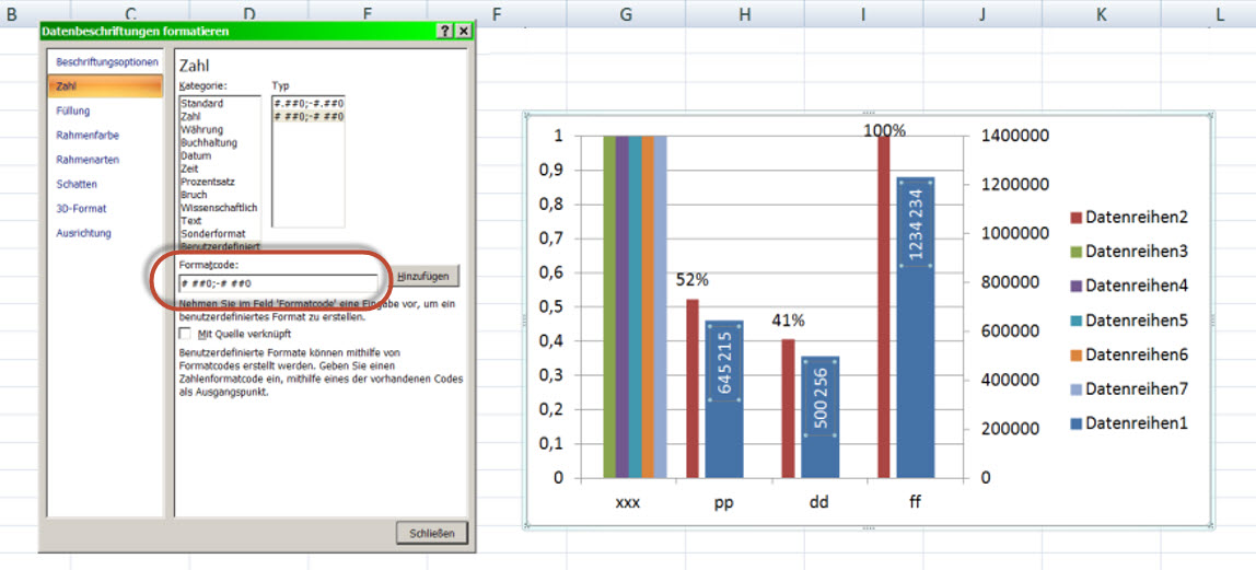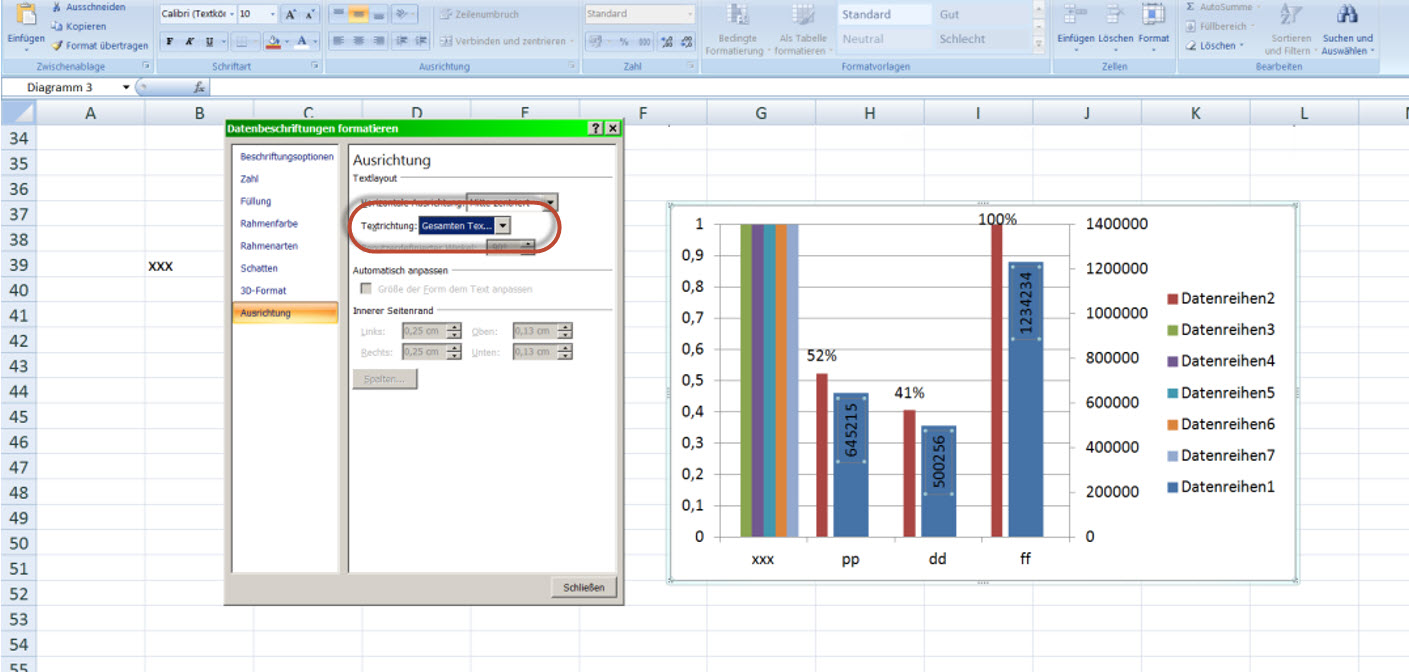 Ganz komisch, manchmal kann ich einfach nicht die Zahlen ÜBER die Säulen eines Diagramms platzieren. Excel bietet mir diese Lösung nicht an.