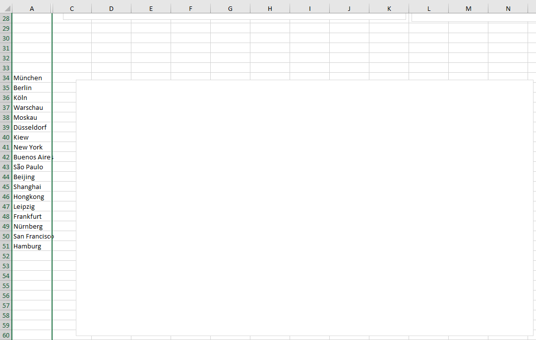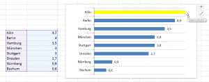 Was ist hier los? – in einem Diagramm kann ich partout Excel nicht dazu überreden, die Balken mit den entsprechenden Städtenamen zu beschriften.