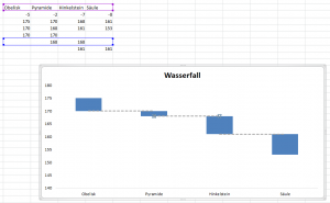Das Problem: in Excel kann man Säulen nur stapeln oder nebeneinander gruppieren. Beides geht nicht. Oder scheint nicht zu gehen.