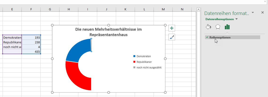 Excel-Diagramme können viel. Aber nicht alles. Beispielsweise keine Halbkreise darstellen, die man für einen Plenarsaal eines Parlaments benötigt.
