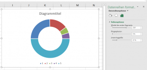 Anschließend kann man das Diagramm drehen, mit Beschriftung versehen, den Halbkreis ohne Farbe formatieren und die einzelnen Segmente ebenso mit den richtigen Farben versehen.