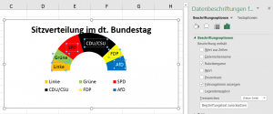 Beginnt man jedoch gleich mit der Summe, die keine Beschriftung hat, werden die Parteien nicht als Beschriftung erkennt und nicht ins Diagramm übernommen: