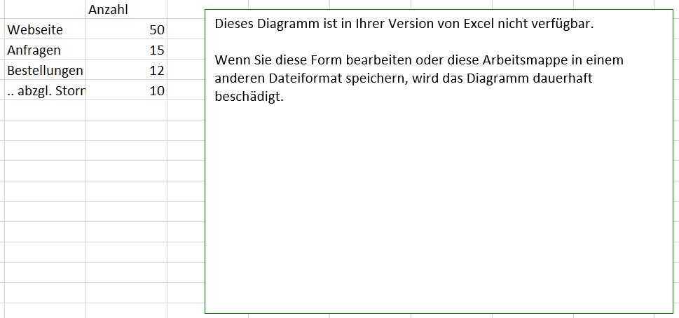 Also in Excel keine Vorschau und kein wirkliches Diagramm: