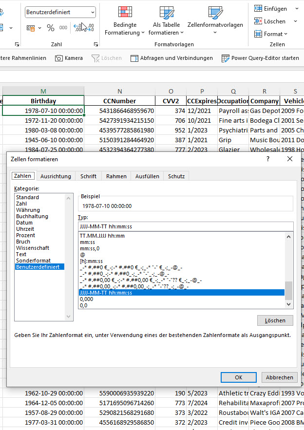 … oder mit einem benutzerdefinierten Datumsformat (Zahlenformat)