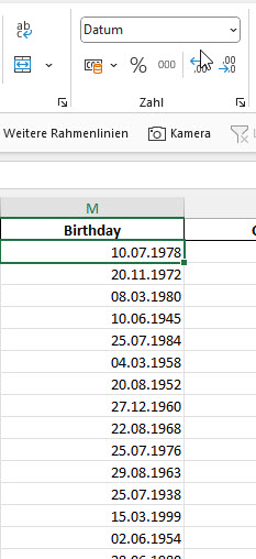 Aber wenn man die Werte der Zellen genauer anschaut, dann fällt sofort auf, dass ein Datum als TT formatiert wurde. Oder genauer: Man sieht nur die Tageszahl des Datums: