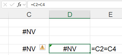 Das Ergebnis ist nicht WAHR, sondern eine Fehlermeldung.