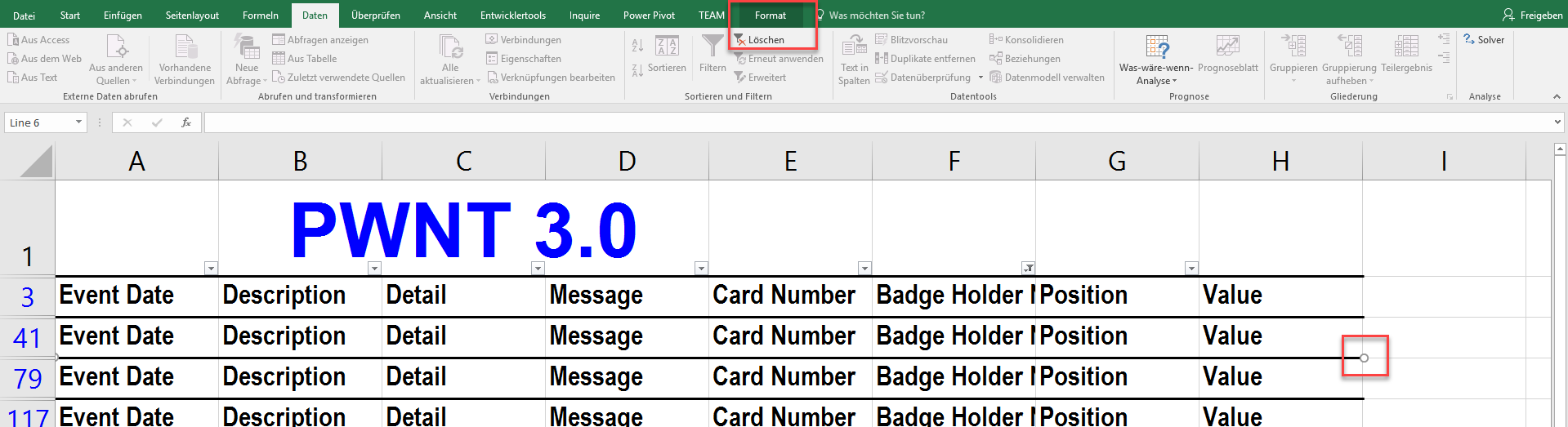 Was mache ich falsch? Die Gruppe „Sortieren und filtern“ zeigt das Symbol „Löschen“ aktiv an. Ich habe einen Filter gesetzt.