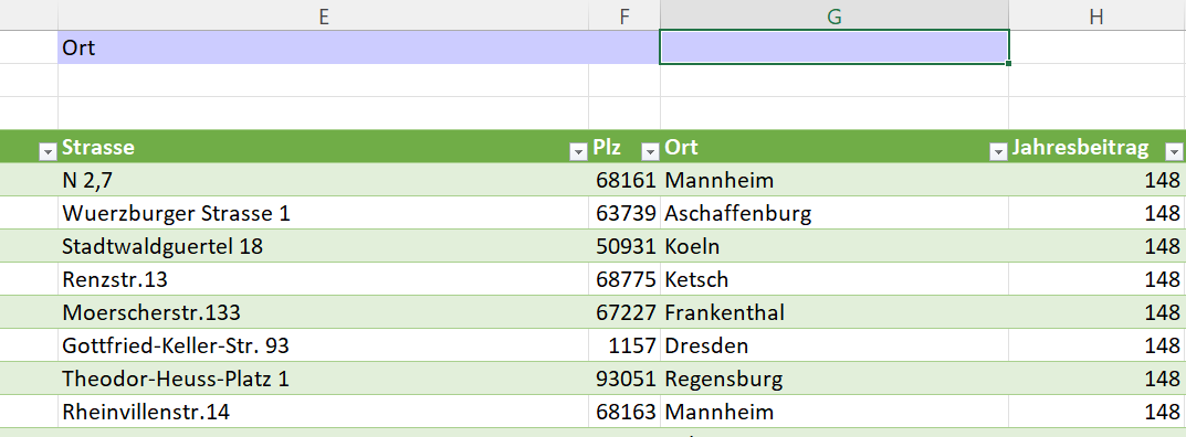 Die Daten, die auf den einzelnen Tabellenblättern dargestellt werden sollen, müssen als Filter vorliegen.