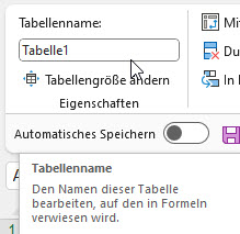 - Namen von intelligenten Tabellen